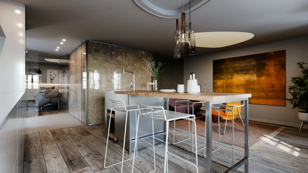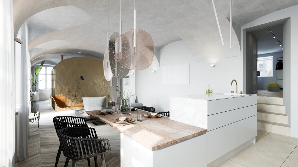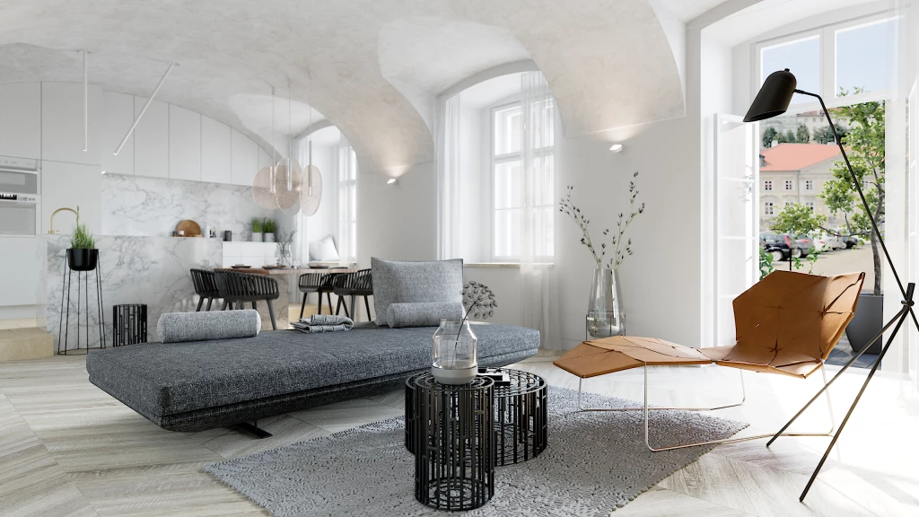 Byty rozmístěné v šesti podlažích jsou propojené moderním výtahem. Prostorné byty ve vyšších patrech nabízejí čelní výhledy na Pražský hrad a katedrálu Sv. Víta. Byty v nižších patrech s původními klenutými stropy jsou orientované do tichého a poetického nádvoří.
